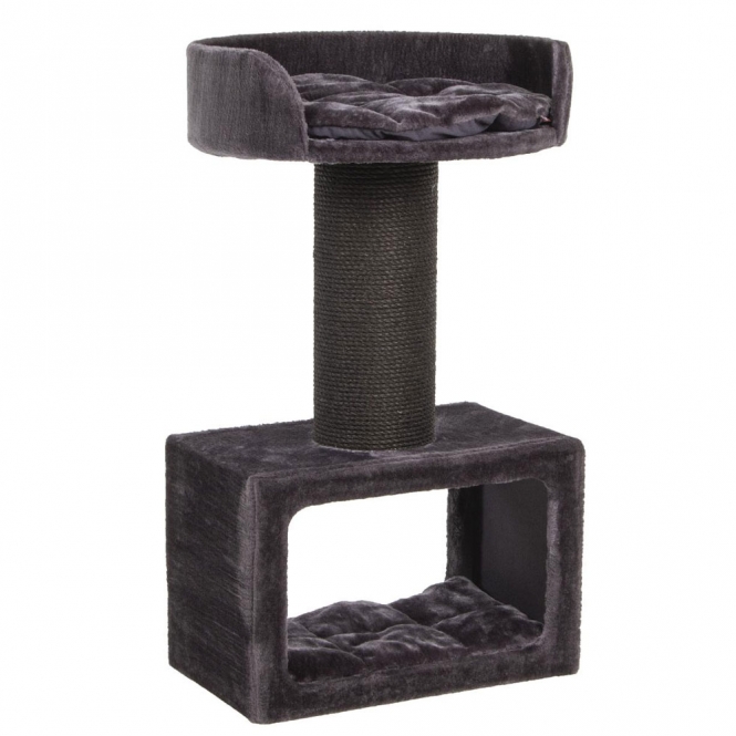 Bei einer Höhe von ca. 106 cm befindet sich das Kuschelbett auf einer angenehmen Position, um mit den Stubentigern sowohl im Sitzen als auch im Stehen zu interagieren. Der Kratzbaum kann praktisch auch neben dem Sofa platziert werden, sodass Ihr Liebling auf Augenhöhe mit Ihnen gemütlich verweilen kann. Auf der runden Liegefläche, welche ein Maß von ca. Ø 60 cm aufweist, befindet sich zudem ein komfortables Kissen. Der Kratzbaum eignet sich demnach prima zum Spielen, verstecken und auch zum kuscheln und schlafen.