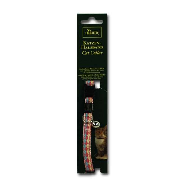 Schickes Katzenhalsband von Hunter in rosa mit gelb-blauer Musterung. Das besonders weiche und elastische Material bietet Ihrem Tier einen angenehmen Tragekomfort. Mit Glöckchen und Steckverschluss.