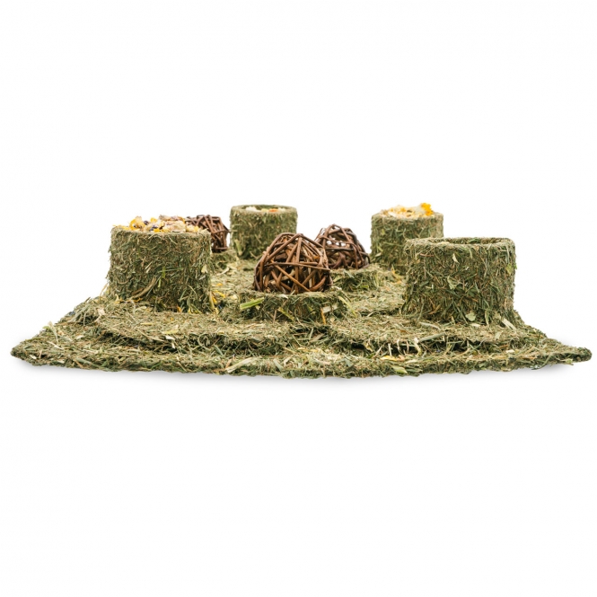 Nagetiere und Zwergkaninchen erschnüffeln ihre Nahrung in freier Natur unter anderem im Boden. Beschäftige deine Lieblinge deshalb auch zu Hause mit der eigenständigen Futtersuche im abwechslungsreichen XXL Fun-Park und trainiere dabei gleichzeitig ihre Sinnesorgane. Durch die Verarbeitung ausschließlich natürlicher Rohstoffe darf der XXL Fun-Park nicht nur benagt, sondern auch komplett verzehrt werden.