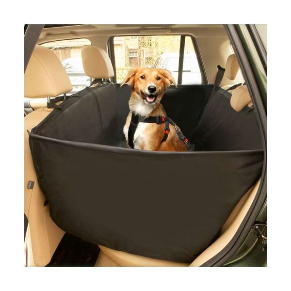 Diese spezielle Schondecke für die Autorückbank schützt teure Autopolster und -bezüge vor hartnäckigen Tierhaaren, Schmutz und Dreck. Sie lässt sich schnell und einfach an den Kopfstützen anbringen. Mit Hilfe von Reißverschlüssen können zusätzlich zwei Seitenschutzteile eingesetzt werden, so dass durch diese Wannenform auch die Türinnenverkleidungen geschützt sind. Die Decke ist durch einen Reißverschluss teilbar, so dass man auch nur die Hälte der Sitzbank bedecken kann und die andere Hälfte normal genutzt werden kann. Eine Gurtschlossdurchführung lässt ein einfaches Anschnallen von Mensch und Hund zu. Das Nylonmaterial der Decke ist stabil, Wasser abweisend und abwaschbar.