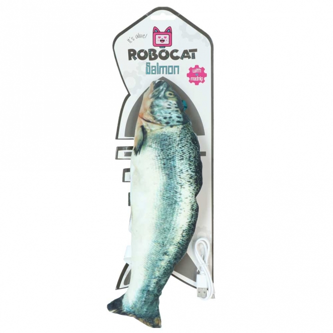 Der erste Lachs, der wirklich zum Leben erwacht, und das als Spielzeug für Katzen! Er beginnt beim Spielen zu Zappeln, wie ein echter Fisch.
