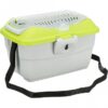 Die Box lässt sich von oben öffnen und ist mit einer Streichelklappe und Belüftungsschlitzen für eine optimale Luftzirkulation ausgestattet. Zwei Griffe und ein Schultergurt sorgen für angenehmen Tragekomfort.