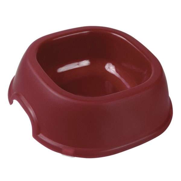 Pflegeleichter quadratischer Kunststoffnapf für Hunde. Mittelschwere Ausführung, rutschfest durch Gummifüße.