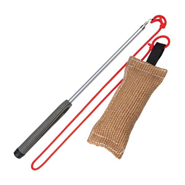 Sie besteht aus einer leichten ausziehbaren Teleskopstange mit Jute-Dummy (genäht) und ist mit einem weichem Schaumstoff-Griff ausgestattet. Das Spiel hilft Ihnen Ihren Hund geistig und körperlich auszulasten und den Jagdinstinkt des Hundes in der Erziehung sinnvoll zu nutzen.