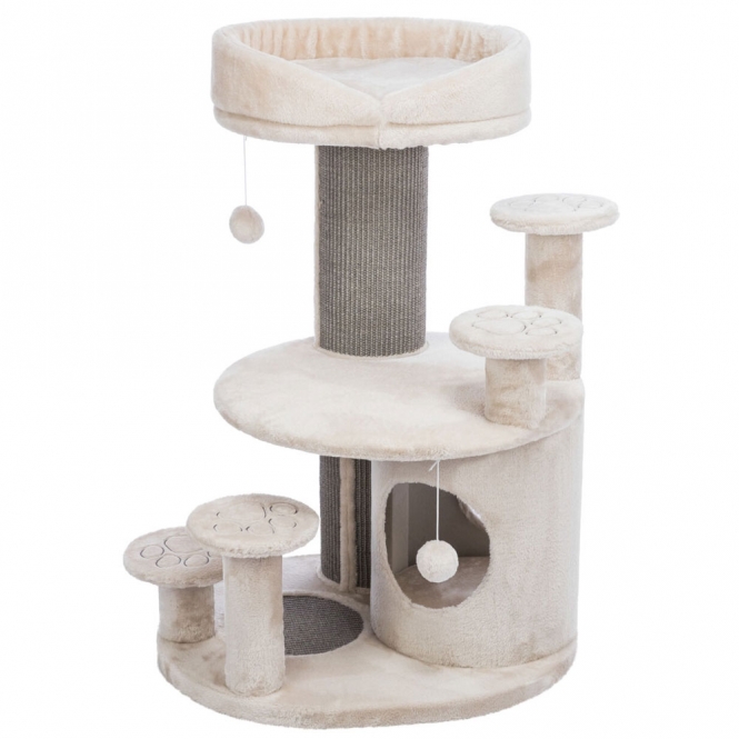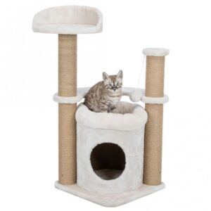 Aber auch Kratzen, Klettern und Spielen kommen nicht zu kurz – der extra dicke Sisal-Kratzstamm, die Sisalkratzfläche auf der Bodenplatte sowie zwei Spielbälle am Seil sorgen für Abwechslung.