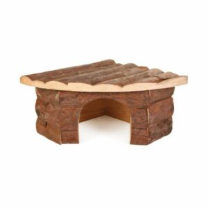 Dieser Unterstand aus geflammtem Holz sieht nicht nur sehr ansprechend aus, sondern stellt für Ihr Kleintier auch einen optimalen Rückzugsort, sowie einen erhöhten Liegeplatz dar.