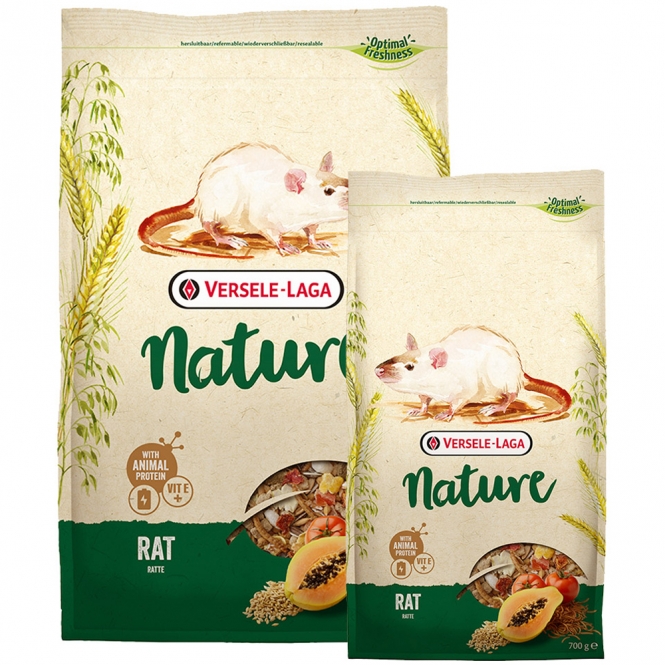 Täglich das Futter und Trinkwasser erneuern. Je nach Größe und Rasse ist für eine Ratte eine durchschnittliche tägliche Futterration von 15 bis 20 g angemessen. Kombinieren Sie mit Nature Snacks zur Abwechslung für das Tier.